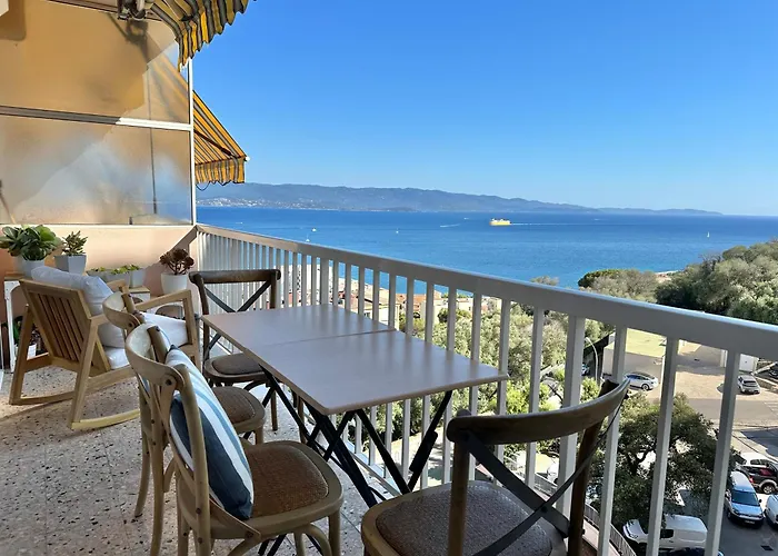 To enjoy your vacation in Ajaccio, stay at the beachfront 65 m^2 Magnifique Appartement 3 Pieces Avec Double Vue Mer Ajaccio, which is just 0.8 km from Place Foch and nearly 25 minutes' walk from Domaine des Milelli. The 1-bedroom apartment with a terrace is located a walk from musee fesch.